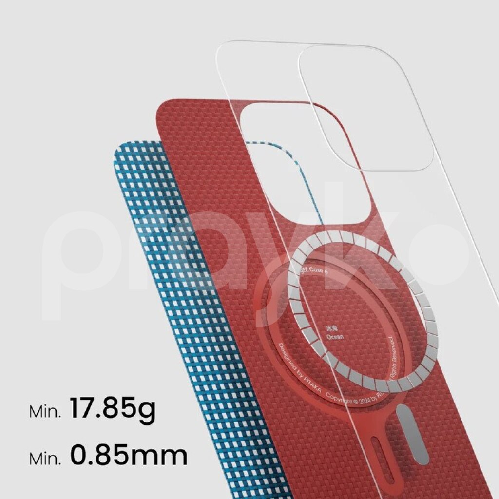 Чехол для iPhone 16 Pro Max, чехол Pitaka, Ultra Slim, синий чехол, арамидное волокно, совместимость с беспроводной зарядкой, аксессуар Apple, тонкий чехол, легкий чехол, универсальный чехол, чехол для смартфона, Ocean Blue, премиум-чехол, минималистичный дизайн, защита для телефона.