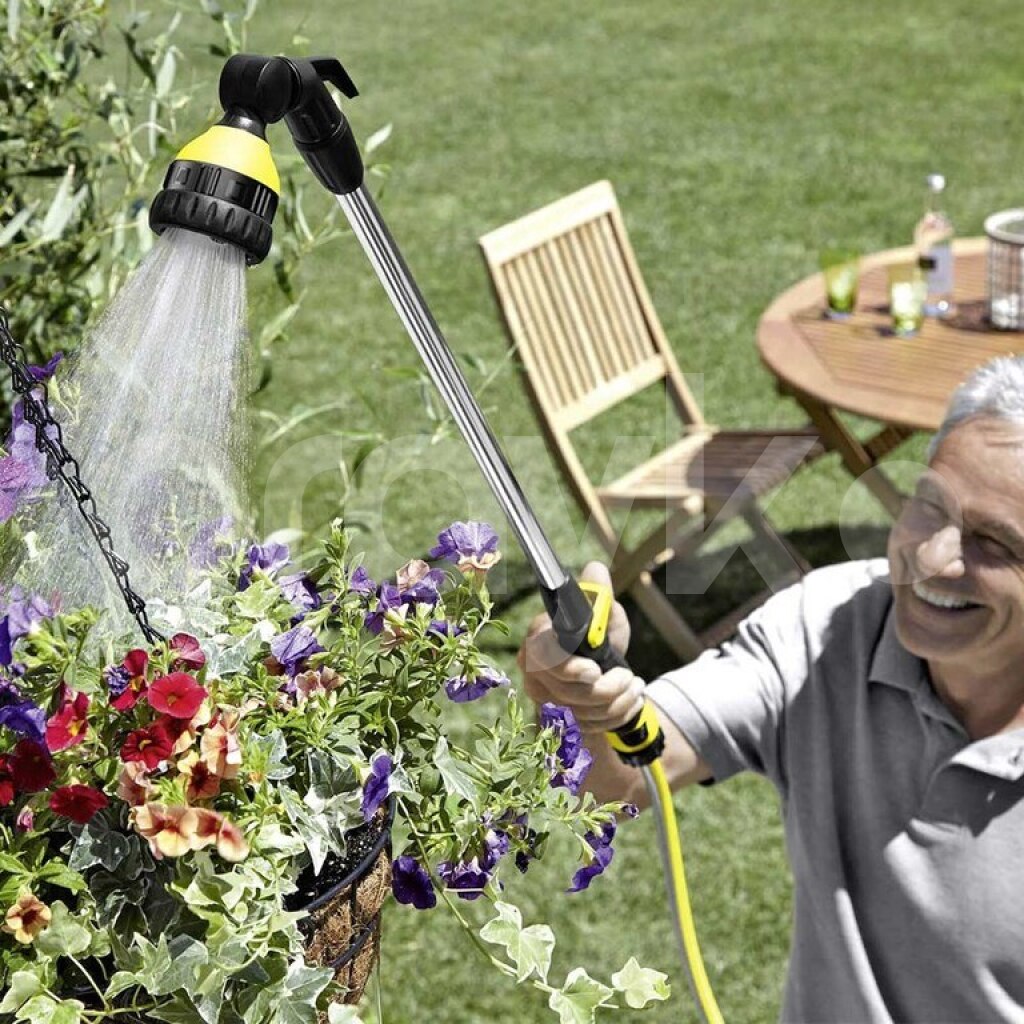 Karcher Spray Lance Plus — kiçik və orta ölçülü sahələrin (gül kolları, tərəvəz bağları, qablarda və asılmış səbətlərdəki bitkilər) sulanması üçün nəzərdə tutulmuş yüksək keyfiyyətli su şlanqına qoşulan sulama başlığıdır.