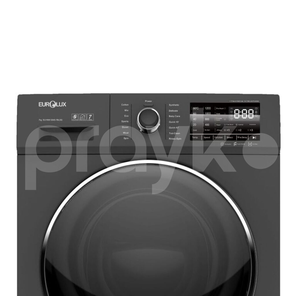 Eurolux EU-WM1234S-7BLDG paltaryuyan maşını, həm yüksək performans, həm də enerji səmərəliliyi təklif edən müasir bir seçimdir. Maksimal sıxma sürəti 1200 dövr/dəq olan bu model, paltarlarınızı tez və effektiv yuyaraq vaxtınıza qənaət edir. A+++ enerji sinfi sayəsində isə enerjiyə minimal ehtiyac duyur, elektrik xərclərini azaldaraq büdcəyə dost bir həll təqdim edir.