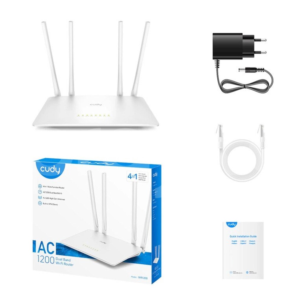 Cudy, WR1200, Wi-FiRouter, AC1200, DualBand, 2.4GHz, 5GHz, YüksəkSürət, ŞəbəkəQurulumu, İnternetBağlantısı, TəhlükəsizŞəbəkə, Şəbəkəİdarəetməsi, Wi-FiƏhatəsi, Evİstifadəsi, KiçikOfis.