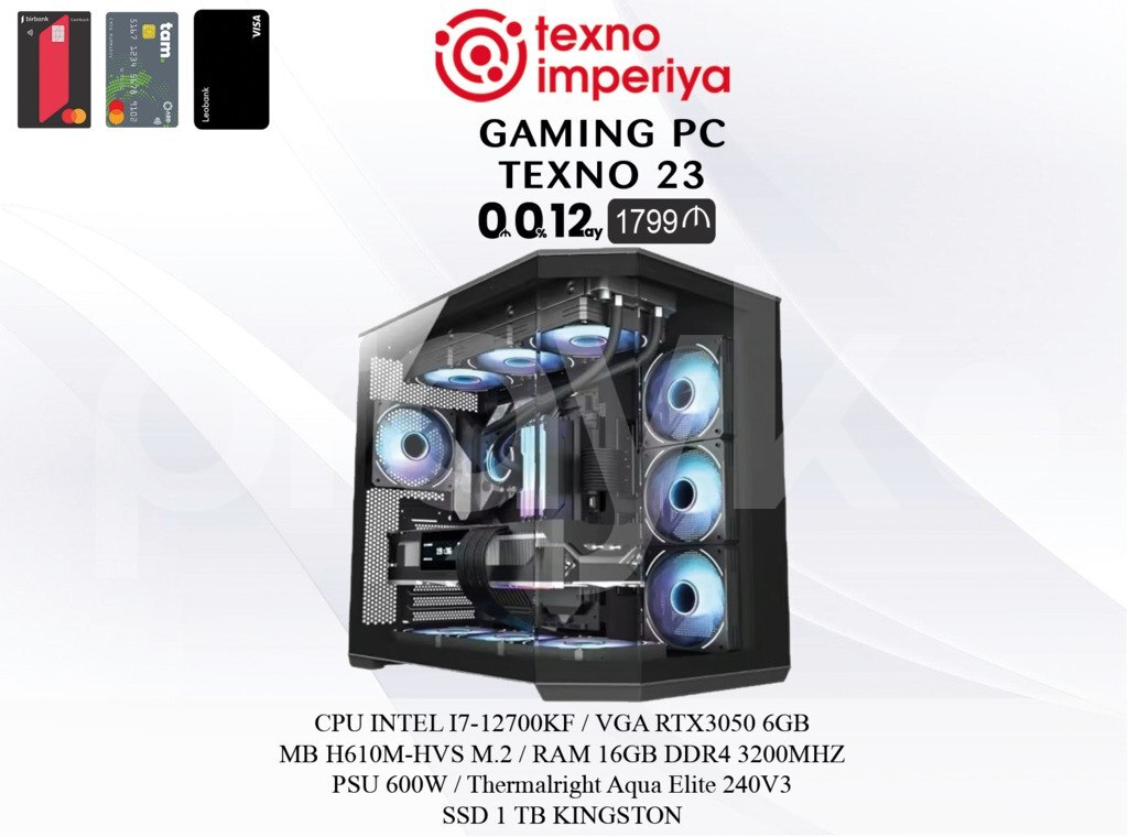 🔥 Gaming PC TEXNO 23 – Güclü Performans, Əlverişli Qiymət! 🎮 💻 Model: Gaming PC TEXNO 23 🏷️ Qiymət: 1599 AZN ➡️ Prosessor (CPU): Intel Core i7-12700KF – 12 nüvəli yüksək sürətli prosessor, həm oyunlar, həm də ağır proqramlar üçün mükəmməldir 🖥️ Videokart (VGA): NVIDIA GeForce RTX 3050 6GB – Full HD oyun təcrübəsi, ray tracing texnologiyası ilə daha real görüntülər 💡 Ana Kart (MB): ASRock H610M-HVS/M.2 – Sabit və performanslı sistem üçün effektiv platforma 📊 RAM: 16GB DDR4 3200MHz – Aydın və sürətli əməliyyatlar üçün kifayət qədər yaddaş ❄️ Soyutma sistemi: Thermalright Aqua Elite 240 V3 ARGB – Güclü və səssiz soyutma ilə prosessoru yüksək yük altında da sərin saxlayır 🔌 Qida Bloku (PSU): Zalman WattBit 600W – Etibarlı enerji ötürülməsi və sabit iş 💾 SSD: 1TB M.2 – Sürətli açılış və məlumat ötürməsi, oyunlar və proqramlar üçün geniş yer 🖥️ Korpus (Case): ZALMAN N4 REV – ARGB işıqlı, müasir və sərin hava axınına malik dizayn 🌟 Niyə Məhz Bu Model? TEXNO 23, oyunçular və gündəlik güclü istifadə üçün balanslı və əlverişli bir seçimdir. RTX 3050 6GB ilə Full HD oyunlarda yüksək FPS əldə edə bilərsiniz. Intel i7-12700KF prosessoru isə multitasking və performanslı tətbiqlərdə maksimum sürət təklif edir. Thermalright 240mm su soyutma sistemi və Zalman dizaynlı korpus ilə həm vizual, həm də texniki baxımdan yüksək səviyyəli bir sistem əldə etmiş olursunuz. 🖥️ Kimlər Üçün Uyğundur? – Oyunçular (CS2, Valorant, GTA V, FIFA 24 və s.) – Video montaj və dizayn işləri görənlər – Gündəlik peşəkar istifadə üçün kompakt, amma güclü sistem istəyənlər – Kompüter kursları və ofis istifadəsi üçün gələcəyə davamlı PC 📦 Əlavə Üstünlüklər: ✅ ARGB işıqlandırma ilə estetik görünüş ✅ 1TB SSD ilə bol yaddaş ✅ DDR4 RAM ilə optimallaşdırılmış performans ✅ 600W güc blokuyla sabit enerji dəstəyi 📍 Baki ş. Şamil Əzizbəyov küç. 148 (28 Mall T/M yaxınlığı) “Texno Imperiya” komandası olaraq sizə seçimlərinizdə dəstək ola bilərik. Mağazamızdan ödənişsiz çatdırılma xidmətimiz ilə məhsullarımızı istənilən ödəniş üsulu (NAĞD, KÖÇÜRMƏ, TAKSİT) ilə ala bilərsiniz. Gaming PC, TEXNO 23, Intel i7-12700KF, RTX 3050 6GB, RTX gaming kompüter, DDR4 RAM 16GB, 1TB SSD M.2, Thermalright Aqua Elite 240V3, gaming üçün PC, büdcəyə uyğun oyun kompüteri, Full HD gaming, Zalman N4 REV, Zalman Wattbit 600W, performanslı PC, ucuz gaming PC, tap.az oyun kompüterləri, peşəkar PC təklifi, ARGB sistemli kompüter.