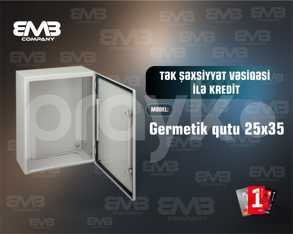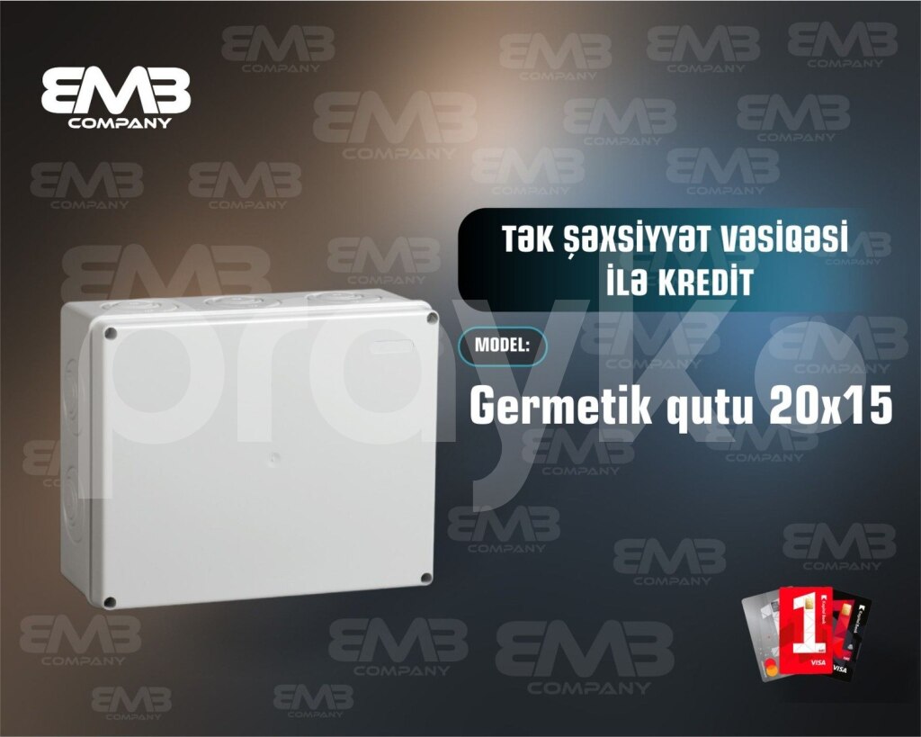 Germetik qutu 20x15 Germetik qutu 20x15 8 azn Germetik qutu 20x30 23 azn Germetik qutu 25x35 35 azn Germetik qutu 30x40 50azn Germetik qutu 40x50 60 azn Açar sözlər: germetik qutu, sızdırmaz qutu, toz keçirməyən qutu, elektrik qutusu, paylayıcı qutu, montaj qutusu, plastik germetik qutu, IP65 qutu, dəmir qutu, daxili montaj qutusu