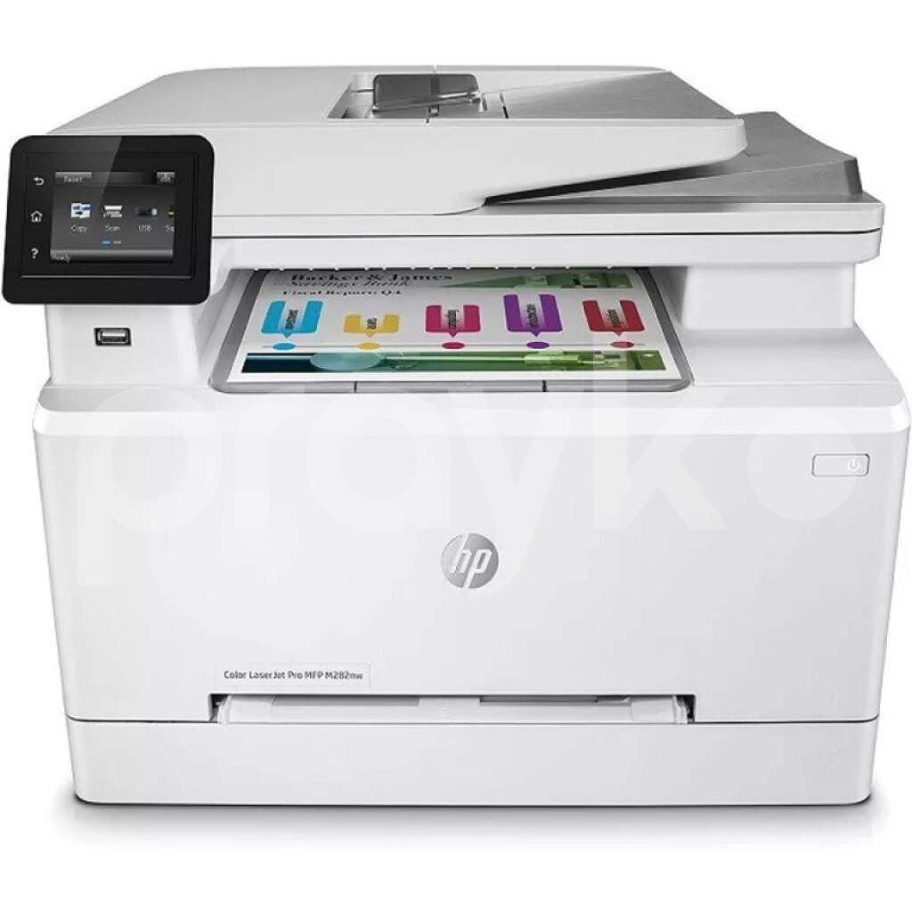 HP Color LaserJet Pro MFP M282nw (7KW72A) is a color laser multifunction printer that supports printing, scanning, copying, and sending functions. This model offers high performance and excellent print quality for modern office environments. It provides easily usable wireless connectivity options for connecting to Wi-Fi and mobile devices. Additionally, it features economical printing and minimizes energy consumption.