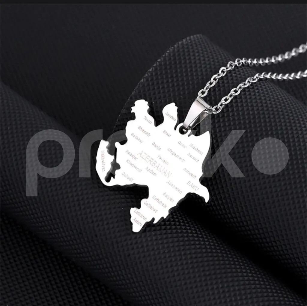 Azərbaycan xəritəsi. Paslanmaz sepli asma, kulon. 20 mmx20 mm. 50 sm sepi. Çatdırılma var Neftçilər