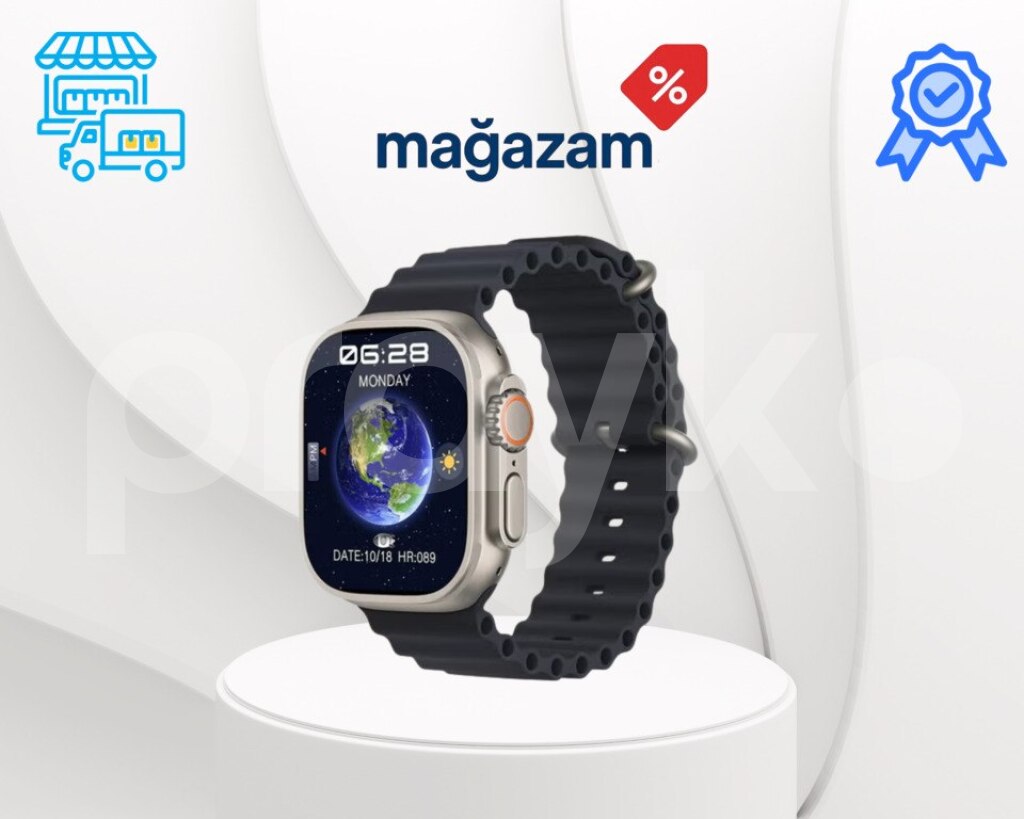 🌐 Əlavə xüsusiyyətlər – NFC (erişim kartları üçün), ChatGPT və AI saat üzü, kompas, səsli qeyd, oflayn musiqi, hava durumu, kompasa yardımı, telefon tapma