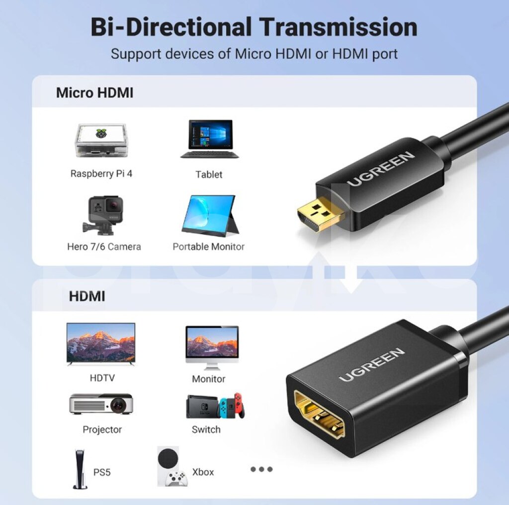 Micro HDMI to HDMI konvertor 4K . UGREEN Micro HDMI-Compatible Adapter 4K /60Hz Micro Male to Female Cable Connector Converter for Raspberry Pi 4 GoPro Micro. • Raspberry Pi 4 Model B Spec|Male Hdmi To Female Displayport Adapter|4K/60Hz Resolution:Experience crystal-clear visuals with 4K/60Hz resolution, enhancing your gaming and video playback. • Gold-Plated Connectors:Gold-plated connectors ensure stable, flawless transmission for your audio and video signals. • Wide Compatibility:This adapter is versatile, working with devices like Raspberry Pi 4, GoPro Hero 7, and Sony A6000. • Easy Plug & Play:Simple plug & play setup makes it effortless to connect your devices for seamless audio and video. • Triple-Shielded Design:Triple-shielded construction ensures stable transmission, reducing signal interference. ➤ Köçürmə ilə də işləyirik şirkətlər ilə . ➤ Solda istifadəçinin digər elanına baxın. ➤ Unvan: Bakı ( 28may ,Narimanov ) Sumqayit ➤ Çatdrilma var şəhər içi və ölkədaxili. mini hdmi to hdmi , mini hdmi hdmi , micro hdmi , mikro hdmi .