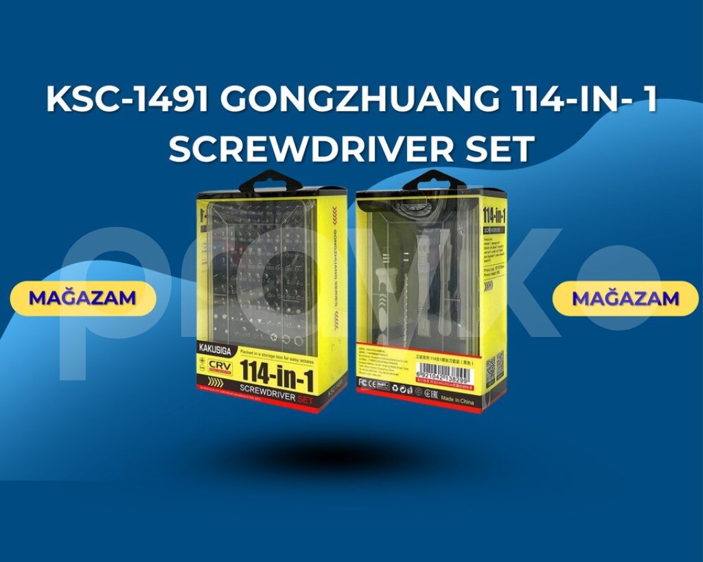 🛠️ GONGZHUANG KSC-1491 usta alət dəsti ilə təmir işləri sizin üçün daha asan olacaq! Bu 114-i 1-də çoxfunksiyalı dəst, smartfonlardan, noutbuklardan və eynəklərdən tutmuş, digər kiçik elektronika cihazlarına qədər bütün növ təmir işləri üçün idealdır. Hər bir detal düşünülərək hazırlanmış bu dəst həm peşəkarlar, həm də həvəskarlar üçün əvəzolunmazdır.