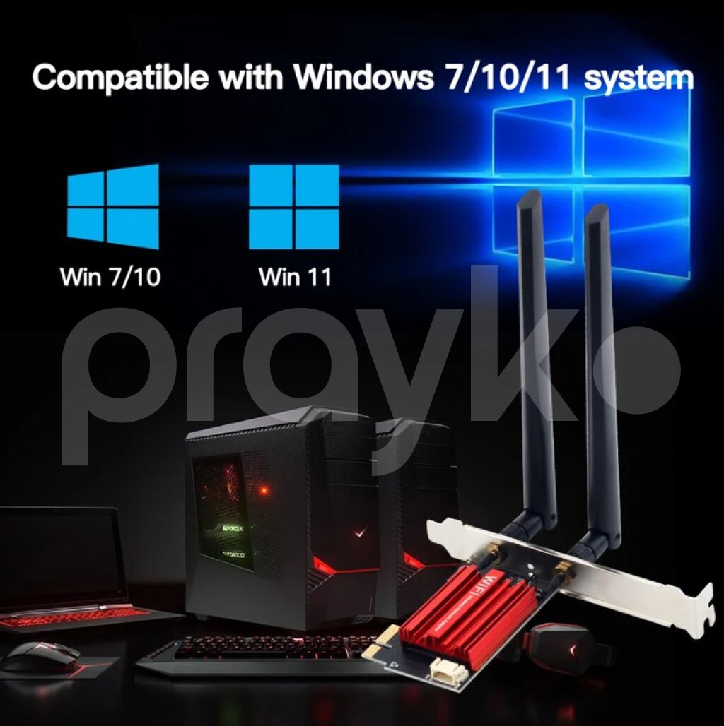 Pci-e portuna taxılan wifi card.Wifi və Bluetooth verir. Əgər stolüstü kompyuterinizdə wifi blutuz yoxdursa bu kart vasitə ilə istifadə edə bilərsiz.Sürət 1200mb dir. WiFi 5 PCI-E Wireless Adapter Network Card AC1200 Dual Band 2.4G/5GHz 802.11AC For Bluetooth 4.0 Desktop Laptop Windows 7/8/10/11 Description Model:Intel WiFi 5 Chipset Tri band: 2.4Ghz / 5Ghz Speed up to 1200Mbps (The router must on 80Mhz); Speed up to 867Mbps(5Ghz), 300Mbps(2.4Ghz) With Bluetooth 4.0, Support MU-MIMO Interface:Pcie x1/X4/X8/X16 Supported Operating Systems: work on Microsoft Windows7/8 10* 64bit, Window 11 Compatible With: Most off Pcie slot's motherboard.(if you have any probelm.Please contact to us) Not support IBM/Thinkpad/lenovo/hp laptop. Download driver file:please click the FENVI Official web and download the driver: wifi card, pci wifi , pci blutuz .