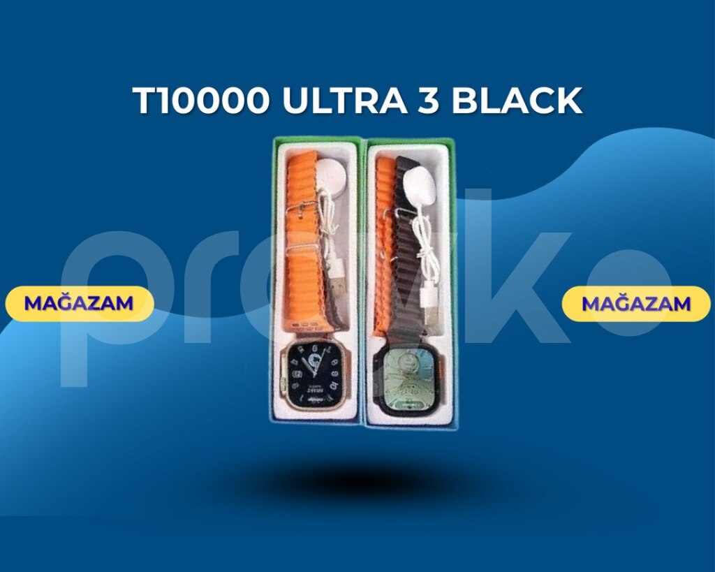 Açar sözlər: t10000 ultra 3, agilli saat, smartwatch, qara, black, 2 kəmərli saat, ultra 3