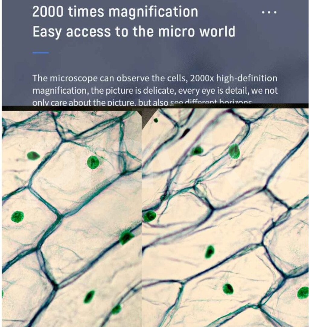 endirim 350azn yox 310azn !!! Mikroskop 2000x iki lupasi var , biri 500x bunun ile elektronik esyalara ve s baxa bilersiz .Digeri 2000X bunun ile biolojidir , bakterya huceyre ve s baxamaq olur . Bu hemm tibb ucun hemde oyrenmek ucundur. Pixel: 5.0M pixels Magnification: 0X-2000X Lens: 500X low magnification lens 2000X high magnification lens WiFi connection distance: 5M (open environment) Working height: 0-70mm Focus mode: Manual focus Knob focus range: 2mm-55mm USB interface type: USB2.0 Data Format: JPG/MP4 Light source: 10 bright LED lights + 1 Super bright LED light Battery capacity: 1800mAh ➤ Köçürmə ilə də işləyirik şirkətlər ilə . ➤ Solda istifadəçinin digər elanına baxın. ➤ Unvan: Bakı ( 28may ,Narimanov ) Sumqayit ➤ Çatdrilma var şəhər içi və ölkədaxili. hediyye , hədiyyə .hədiyə .hediye.gift ,mikraskop ,microscpoe .