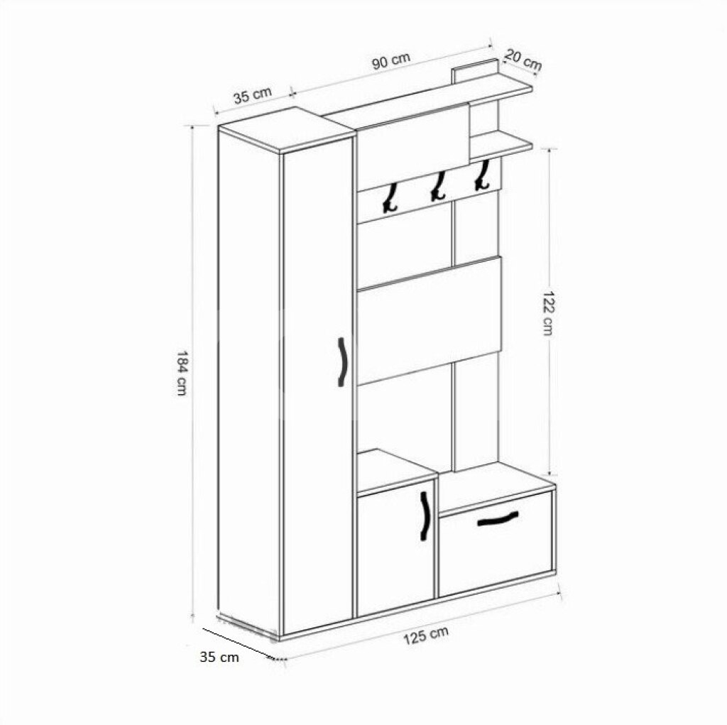 Eni 125sm, hündürlüyü 184sm, dərinliyi 35sm