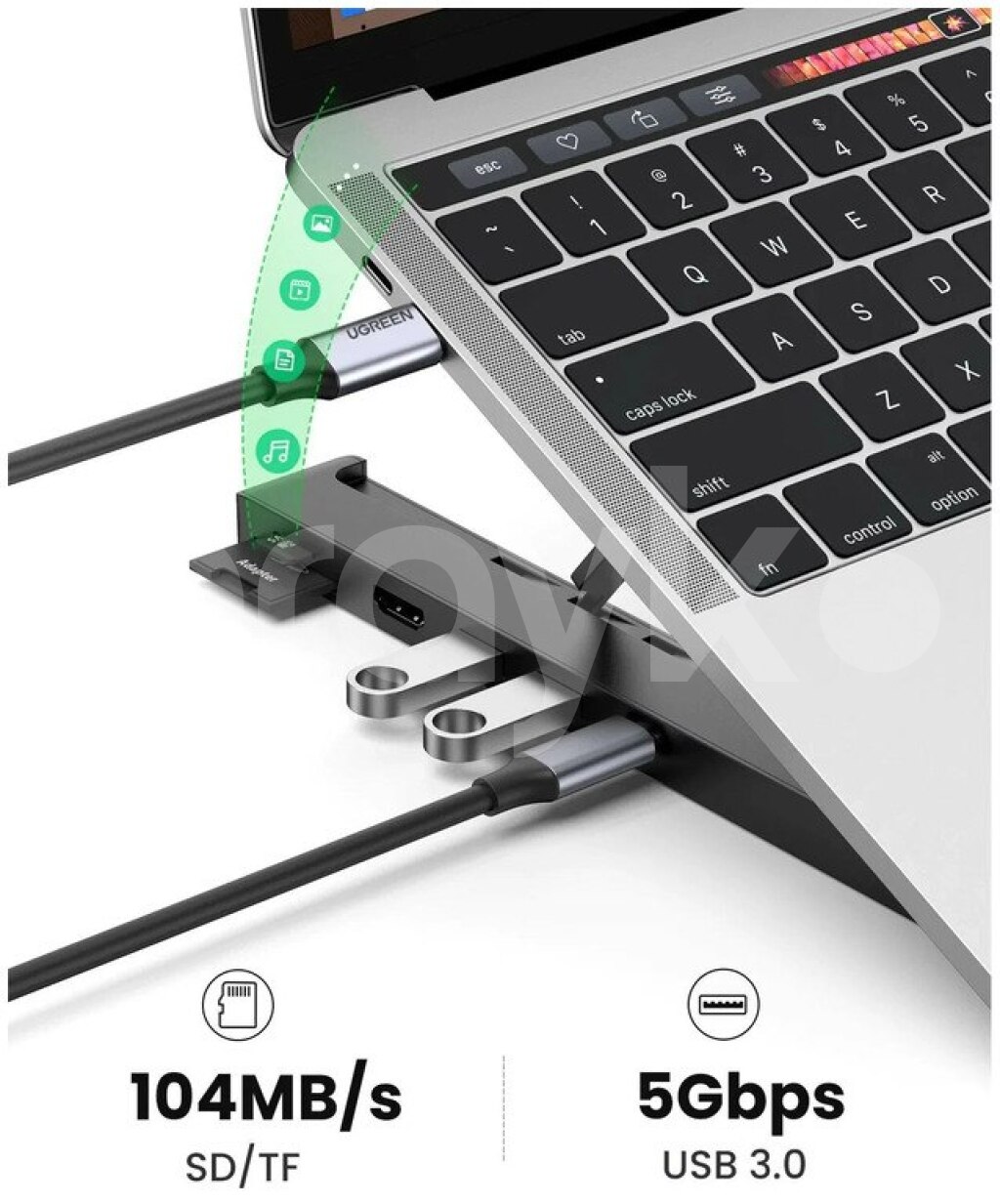 UGREEN USB-C to 2*USB3.0+HDMI+SD+TF Card Reader Docking Station CM359 80551