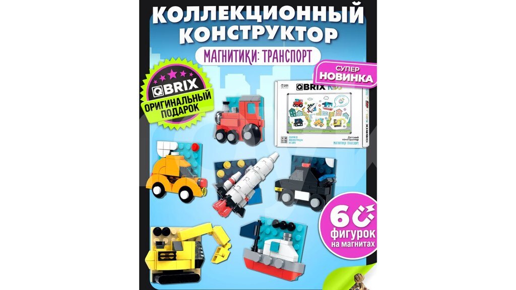 Этот продукт — оригинальный набор от бренда QBRIX. На упаковке есть QR-код, отсканировав который, вы перейдете на официальный сайт QBRIX, где можно выбрать именно этот набор и посмотреть видео-инструкцию по сборке. Из набора собираются 6 разных моделей транспорта. Особенность — наличие магнита, благодаря чему готовую модель можно прикрепить, например, к холодильнику. Отличный выбор для умственного развития ребёнка!