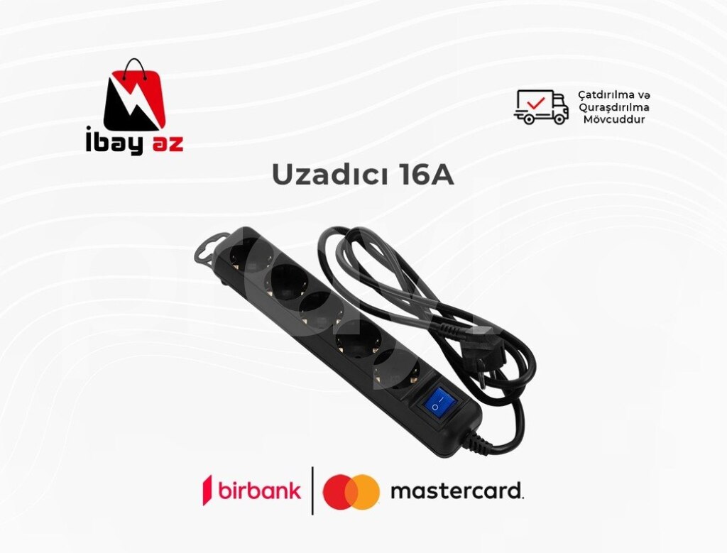 16A elektrik uzadıcı – güclü elektrik cərəyanına davamlı, yüksək güc tələb edən məişət və sənaye cihazları üçün uyğun uzadıcı növüdür. Bu tip uzadıcılar adətən qalın və yanğına davamlı kabellə təchiz olunur. Eyni anda bir neçə cihazın təhlükəsiz istifadəsini təmin edir. Xüsusilə məişət texnikası, elektrik alətləri və kondisioner kimi avadanlıqlar üçün ideal seçimdir.