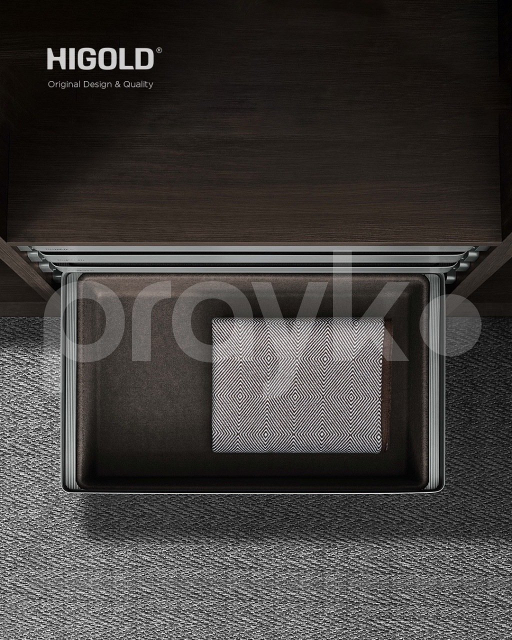 Aksesuarlarınızın dizaynını Higoldun çox funksional çəkməcəsi ilə tərtib edin. Çəkməcədə şəflər, əlcəklər, gözlüklər, və bir çox gündəlik istifadə etdiyiniz əşyalarala istədiyiniz kimi düzəm verə bilərsiniz. Bu zərif saxlama qutusu əşyalarınızı asanlıqla əldə oluna bilən edir və hər bir qarderoba incəlik toxunuşu əlavə edir. Xüsusiyyətlər: B Seriyasının çoxfunksiyalı saxlama qutusu dəbdəbəli dizaynı və praktikliyi birləşdirir. Yumşaq qapalı sistem çekmecenin hamar və səssiz sürüşməsini təmin edir, yumşaq toxunuşlu Armani eki dəri isə isti və mürəkkəb görünüş yaradır. O, 900 mm enində şkaflara mükəmməl uyğun gəlir və aksesuarlar və ya kiçik geyim əşyaları üçün idealdır. HIGOLDun dizaynı keyfiyyət və rahatlığa önəm verənlər üçün diqqətlə seçilir.Yumşaq qapanma sistemi, səssiz işləmə. Kompakt, davamlı və şık.