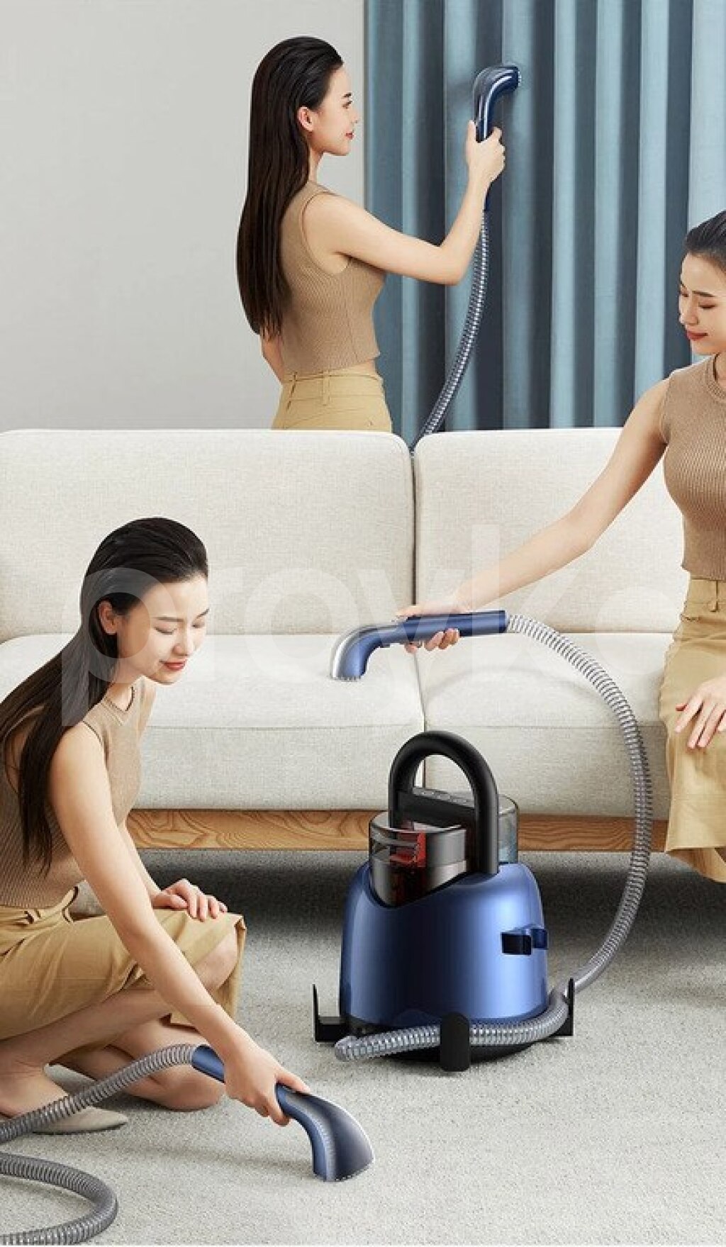Yuyucu tozsoran parçanın dərin qatlarının su ilə təmizlənməsini və xalçaların, divanların və ya pərdələrin tez qurumasını təmin edən təmizləmə sisteminə malikdir.