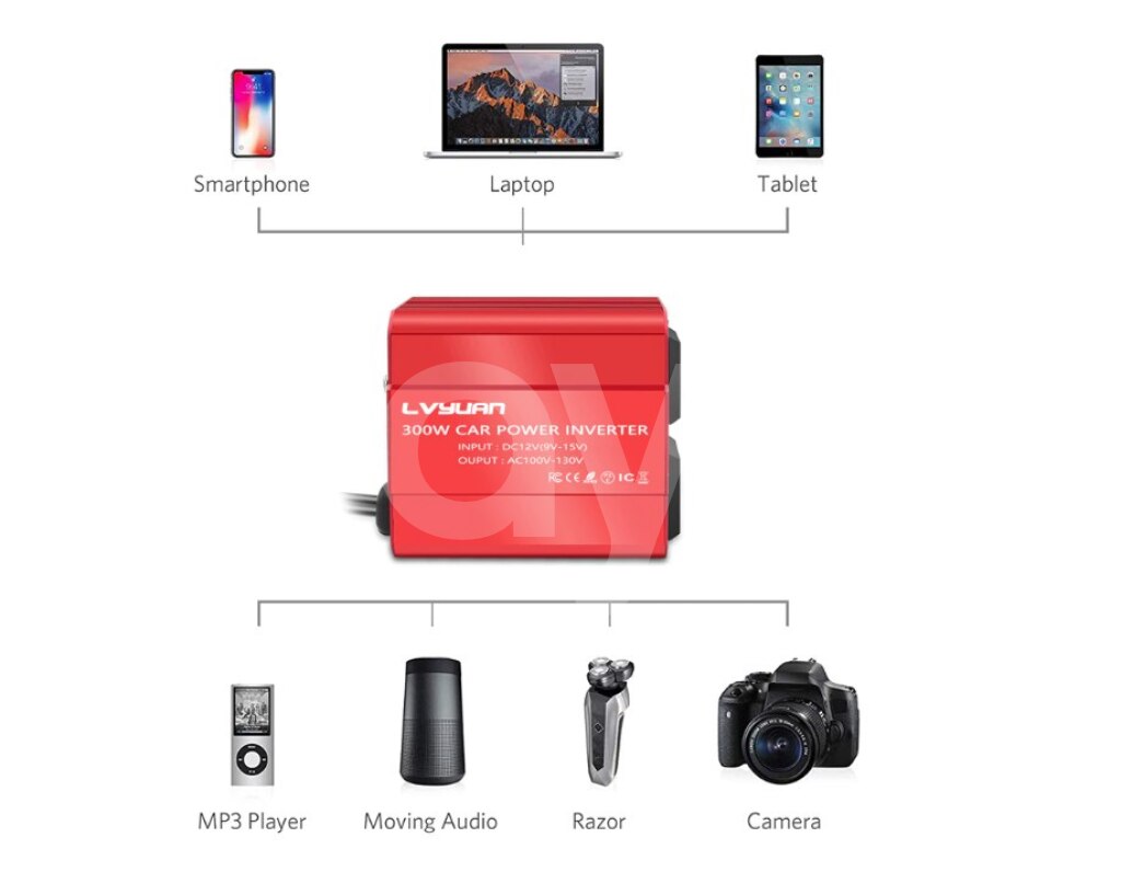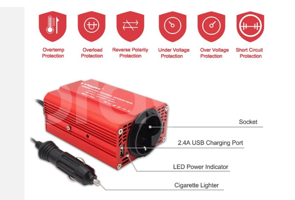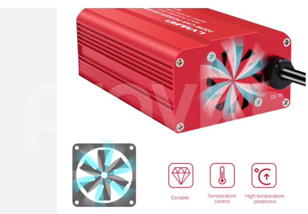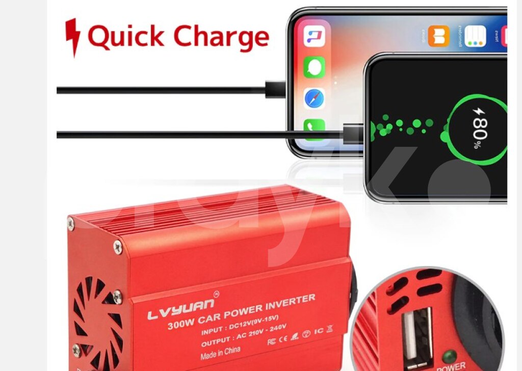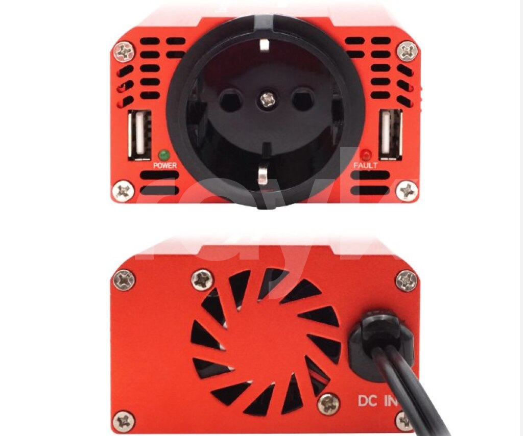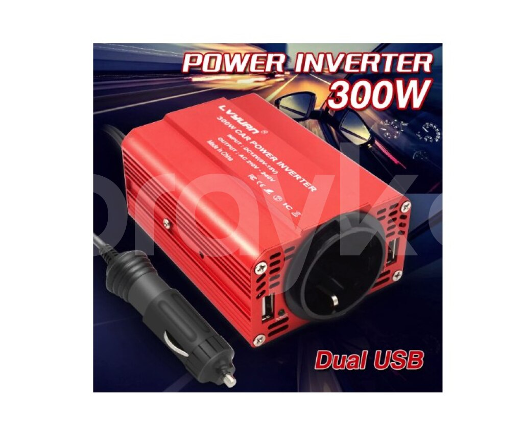 Maşın üçün invertor . Sigaret yaniran portuna bunu taxmaq ile 220 volt enerji verir.İstediyiniz yungul anperjli ciahzi masinda qosa bilersiz. 300W Car Power Inverter DC 12V To AC 220V Dual USB Car Adapter Converter Auto Charger Modified Sine Wave EU US Socket Product specification Color: Red Output Power: 300W DC Input: DC 11V-15V AC Output: 110V/220V 50Hz/60Hz USB Ports: 2 USB Charger Ports, Max. Output 3.1A Size: 3.3 x 3.1 x 1.8 inches Weight: 8.8 oz (250g) Product features 1.Dual-USB 3.1A Output 2.Isolation Voltage Protection 3.Durable Cigarette Lighter 4.Aluminum Alloy Housing 5.Top Speed Charging 6.Built-in Smart Cooling Fan