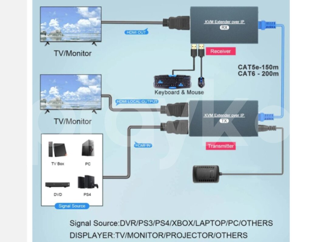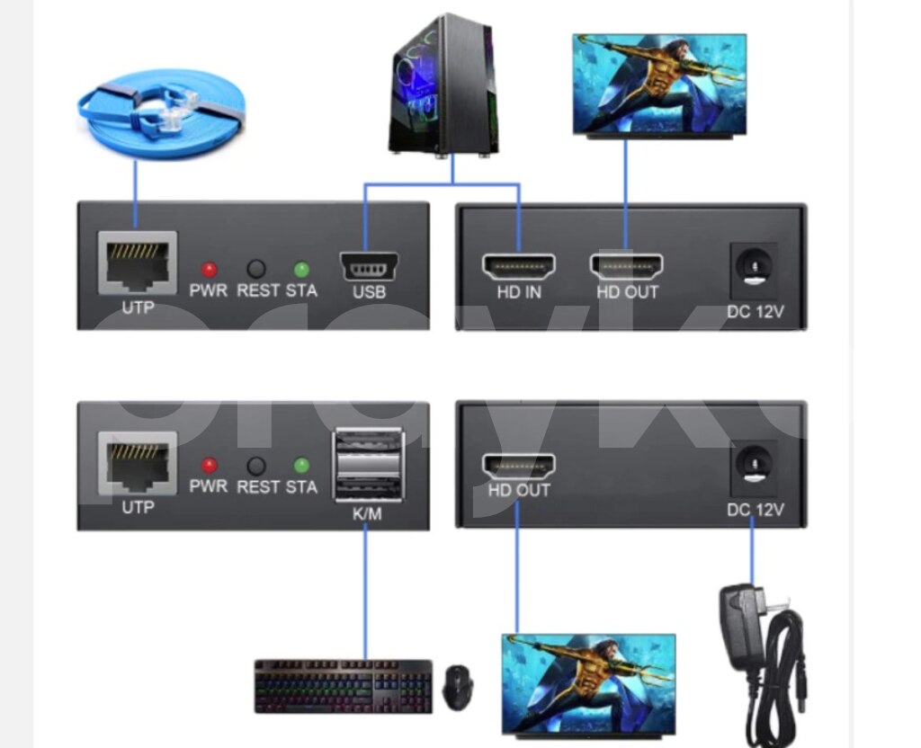 HDMI Extender 200metr HDMI to Rj45 Hdmi kabeli cat6 kabel ilə uzatmaq. • Transmission Distance:up to 200m over a single CAT5e CAT6 cable; • Video resolution:up to 480P,720P,1920*1080P@60Hz; • Audio sampling rate:32kHz, 44.1kHz and 48kHz ; • Audio Format:DTS-HD/Dolby-true HD/LPCM7.1/DTS/DSD ; • USB KVM function:Support keyboard and mouse romote control; • HDMI Loop out:The transmitter with one HDMI local output; • H.264 compressed Technology,less than 50ms delay; • Male to male:one TX to one RX applicataion; • Male to female:TCP/IP,one TX to N RX(Max:253 pcs RX) application with Ethernet switch/Router; • IEEE-568B:standard 802.3 Ethernet 10/ 100/ 1000Mbps; • Video standard:compliance with HDMI 1.3 and HDCP 1.2 standard; • Copy EDID function :match many kinds of display devices; • Built-in automatic adjustment system:make the image smooth, clear and stable; • Built-in ESD protection system:make transmission much safer. Perfect hdmi extension adapter for large homes, factories, construction sites, data control centers etc;plug and play • Simple to install, plug and play Specifications: Video Standards----------HDMI 1.3; HDCP 1.2 Maximum pixel clock------165MHz Maximum data rate-------6.75Gbps Resolution ------1920X1080@60Hz Connector-----HDMI-A Impedance--------100Ω USB Interface-------PC: Type B USB interface; connect to pc;K/M: connect USB keyboard and mouse USB signal----------HID Signal UTP Interface-----RJ45 Transmission distance--------CAT5:100m,CAT5:120m,CAT6:200m ➤ Solda istifadəçinin digər elanına baxın. ➤ Unvan: Bakı ( 28may ,Narimanov ) Sumqayit ➤ Çatdrilma var şəhər içi və ölkədaxili. hdmi uzadici
