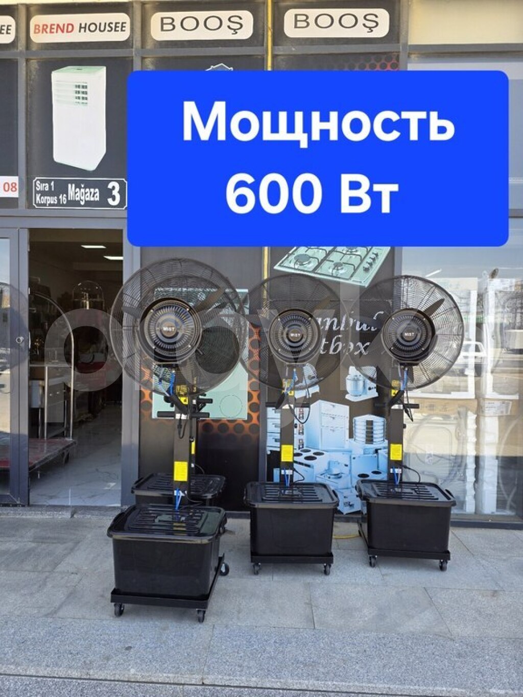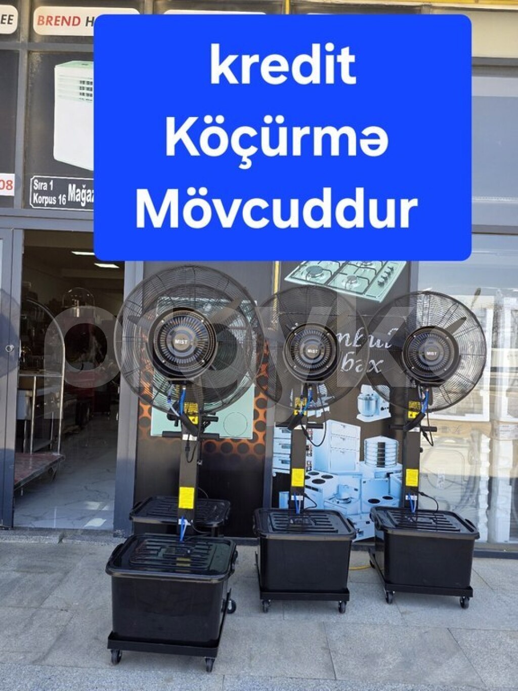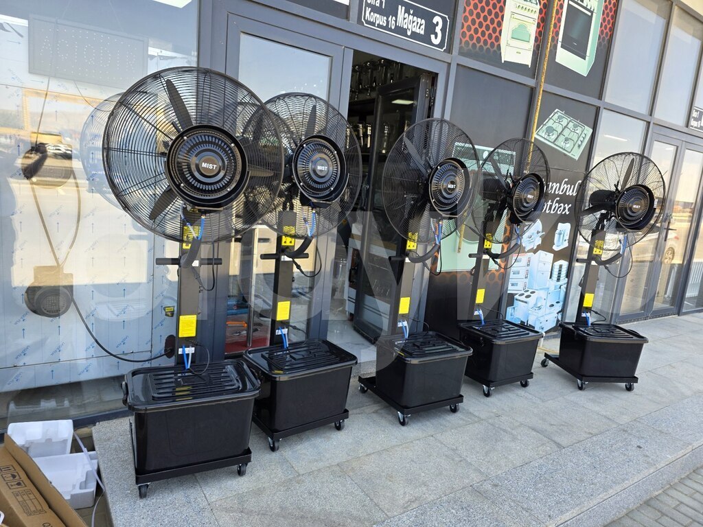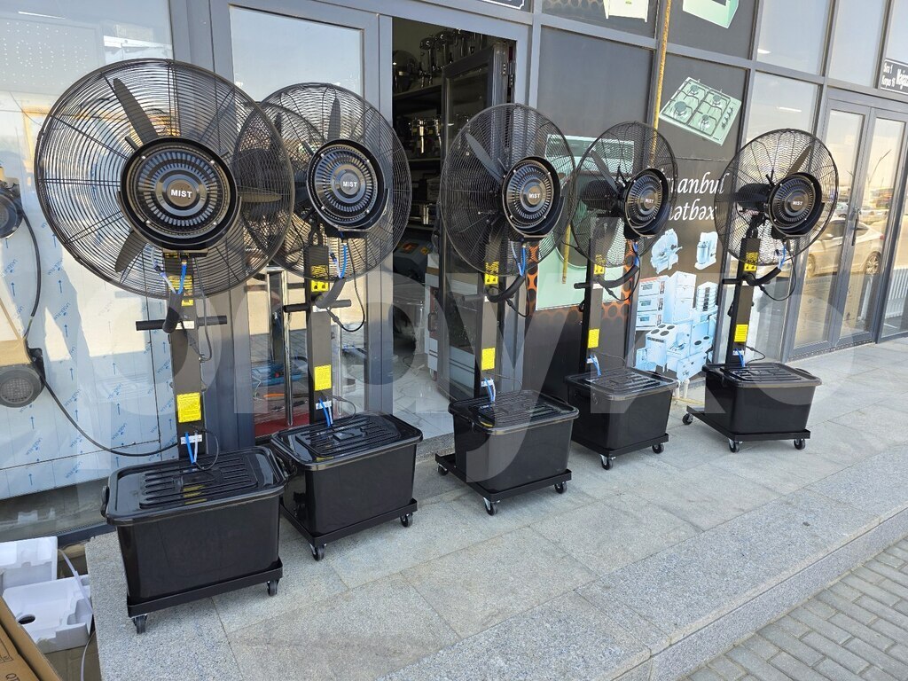 -Bu ventilyatorlar buxarı sprey edirlər, havanı yayırlar və məkanı sərin saxlayırlar.